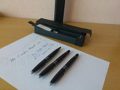 Sunt innebunita dupa stilourile care scriu excelent, arata deosebit...si sunt si ale unor firme recunoscute pe plan mondial pentru calitate, design, cunoscute pentru preturile cam piperate, e adevarat, dar aici am gasit O SUPER OFERTA DE PRET! Inca ma mai minunez ce preturi bune au astia pe site si m-am gandit sa postez si pe blog pentru cei ca mine. Desi ne-am obisnuit cu tastatura...ne place sa scoatem un pix sau un stilou de firma, care scrie super cand semnam ceva, cand dam un numar de